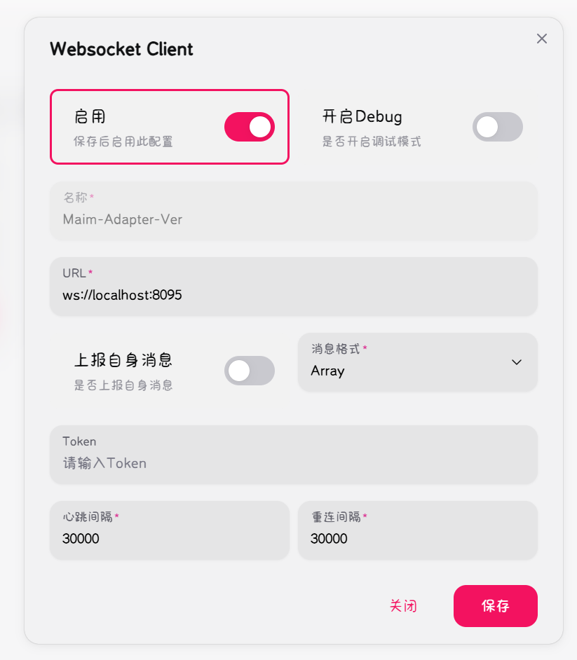 1. 在Napcat中新建websocket客户端并设置反向代理的url(这里以ws://localhost:8095/为例)